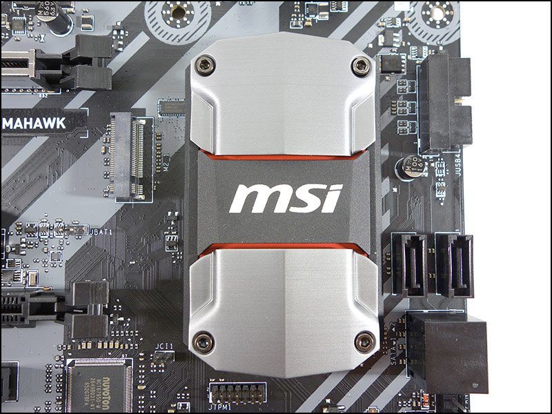 We really like the chipset cooler on this the B350 Tomahawk. It is undeniably cool looking, and not just another flat rectangular slab of aluminium. The only thing that could have made it even better was if MSI had actually integrated some red LEDs into it, so that it could be part of the overall lighting scheme.