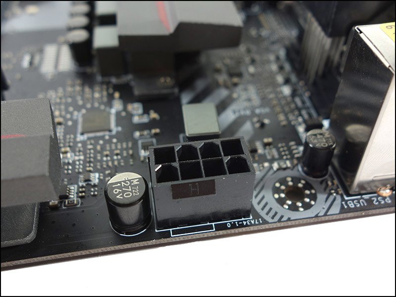 The Richtek controller is operating in 4+2 phase mode – which is to say four phases for the cores and two phases for the SOC. However, while the core voltage phases consists of one highside NIKOS PK616BA FET paired with two lowside NIKOS PK632BA FETs, the SOC phases get two of each so it clearly more capable than the pure phase count might indicate. While we can’t find the exact specifications anywhere, these do appear to be the same solid black capacitors used on high-end MSI motherboards like the Z270 Gaming M7 and X370 XPower, so there’s no cost-cutting there.